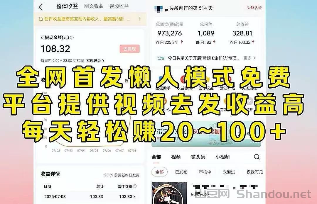 今日头条、代运营零撸平台,登陆然后去授权头条号 完了领视频发布就行了 特别简単,轻松当天收益100+