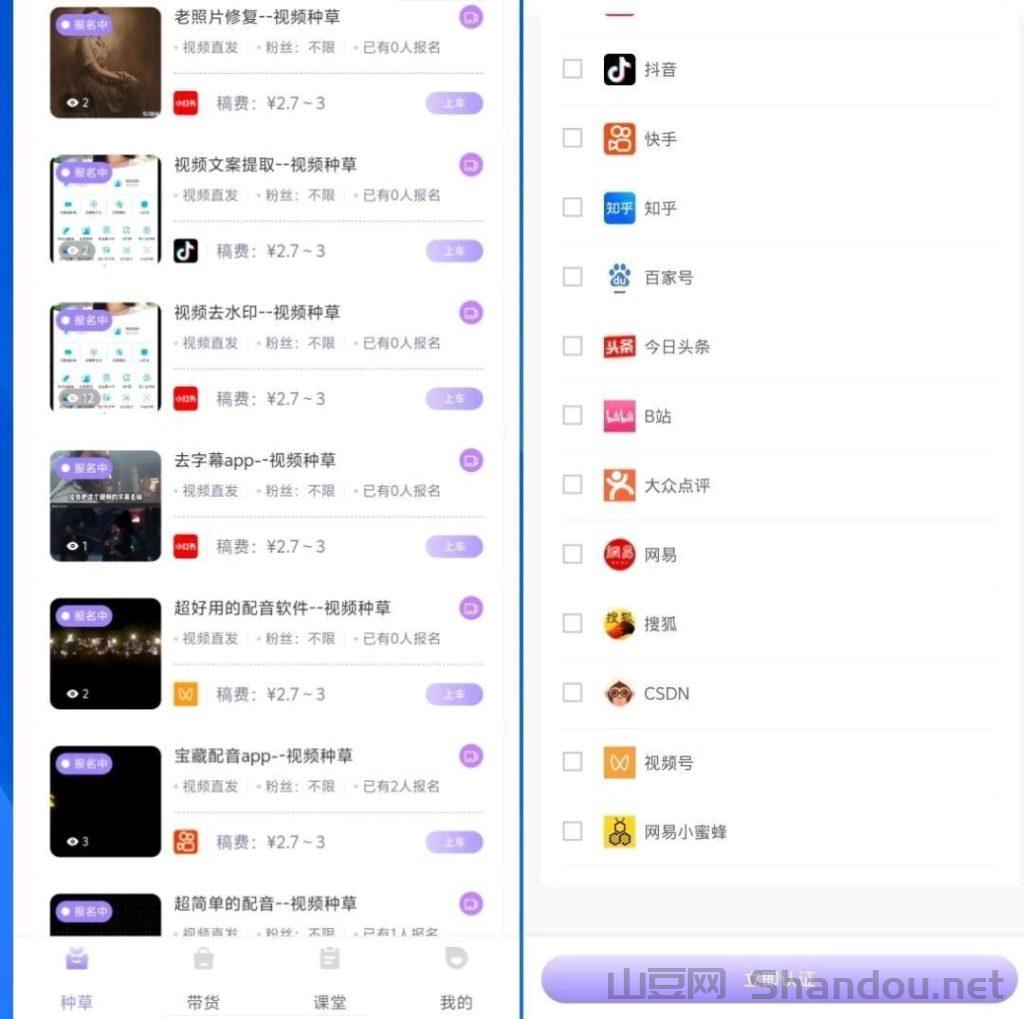 小猫种草首码上线,种草发视频代发,保底收益高,新品上线,团队模式,邀请日入几十米。