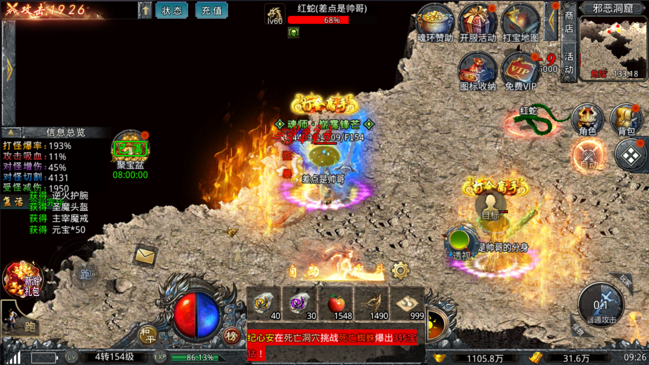 每天必做:限时活动(爆元宝)、世界BOSS(抢首爆)、挂机地图刷祝福油和技能书。多开小号,资源集中养大号,效率翻倍。